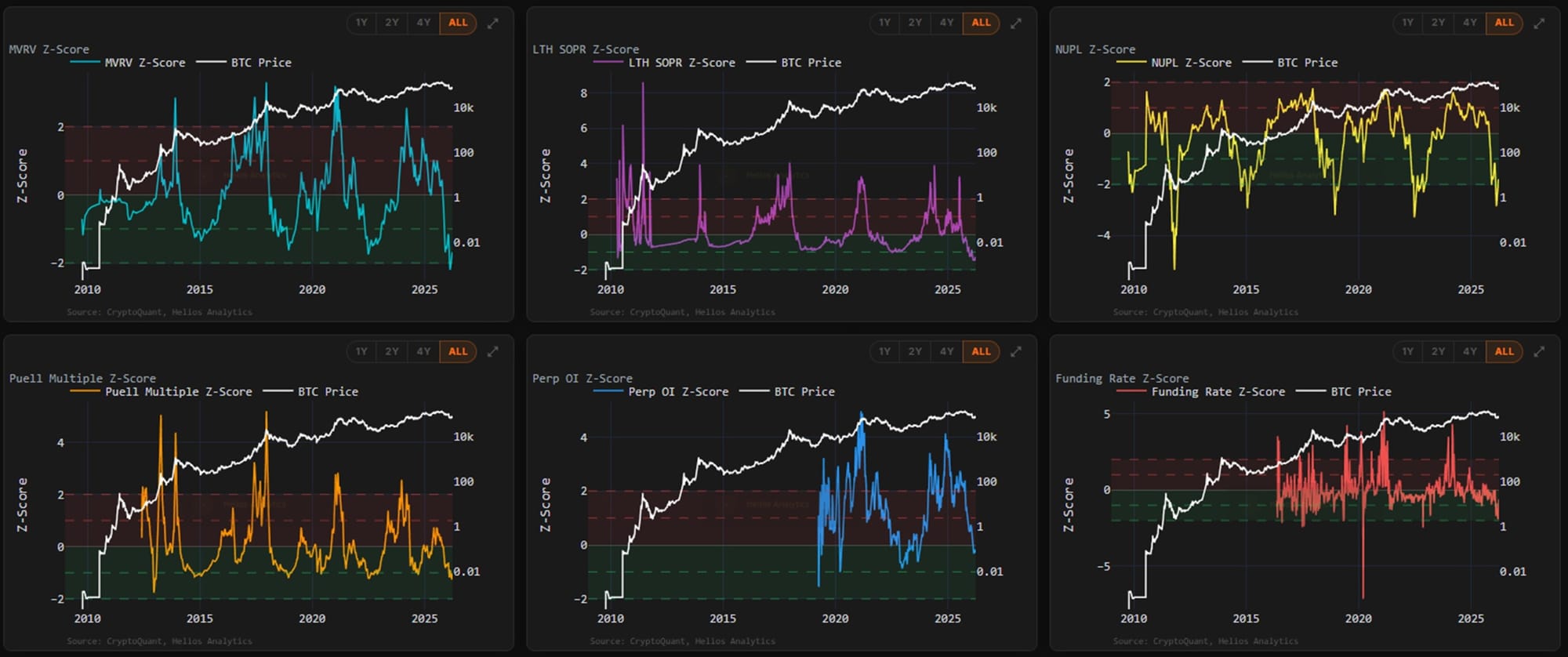 Bitcoin value zones are probabilistic, not precise. The same Z-score readings that look like a floor today were sometimes weeks, sometimes months from the actual low in prior cycles. The point is BTC should be close to its trough.