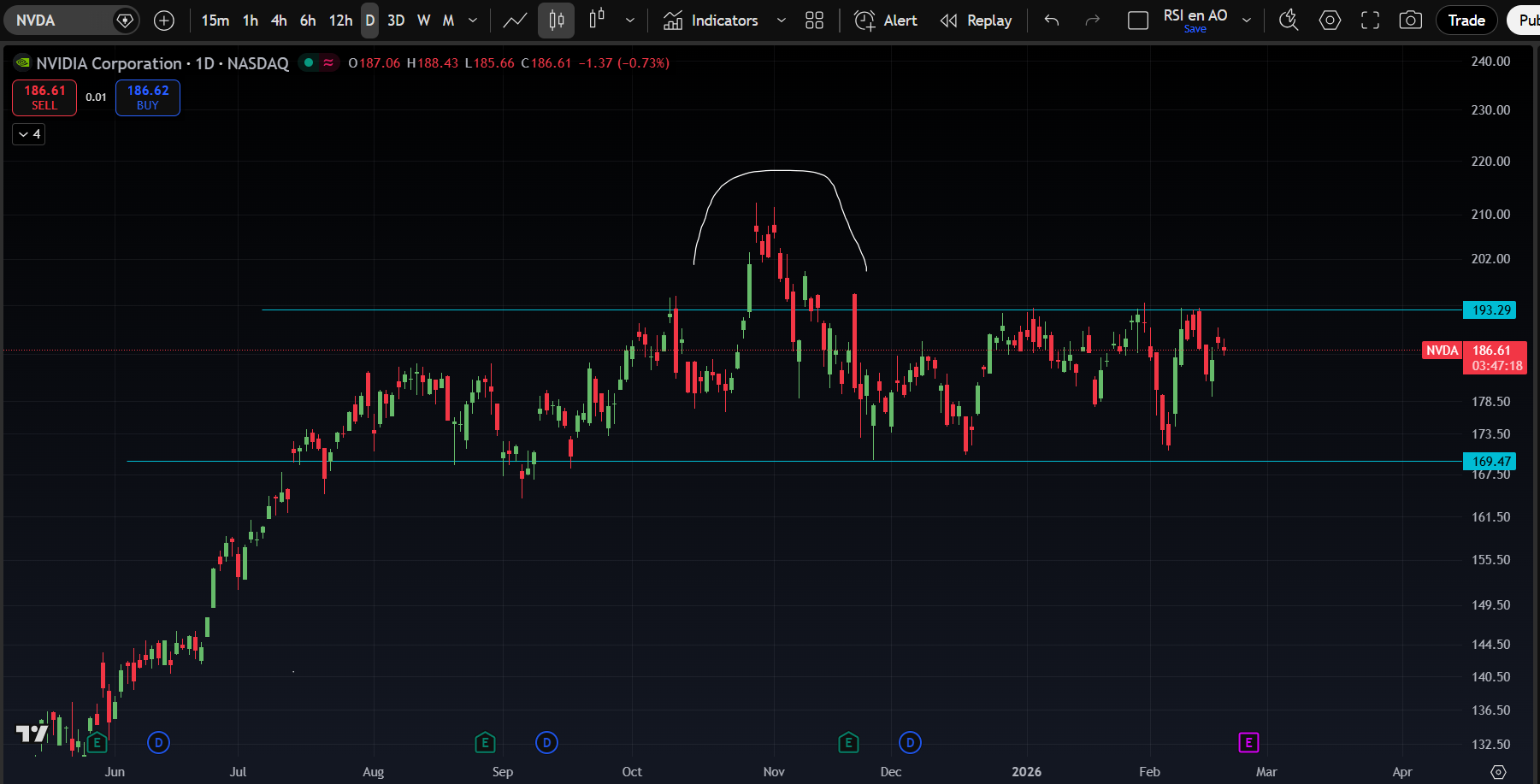 A second argument is Nvidia's own chart. The image below shows that the price has been trading between $170 and $194 since last summer, with a brief excursion above. A significant deviation from expectations could be the spark that causes a breakout from this range, either up or down. Since the sideways period has now lasted quite a few months, a breakout is likely to result in a trending move.