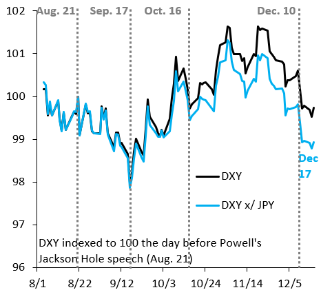 It's mainly the weakness of the Japanese yen that has kept the dollar exchange rate balanced since Powell's speech in August. Without the Japanese yen, the dollar index would have been much lower, which means the dollar is weaker than it appears.