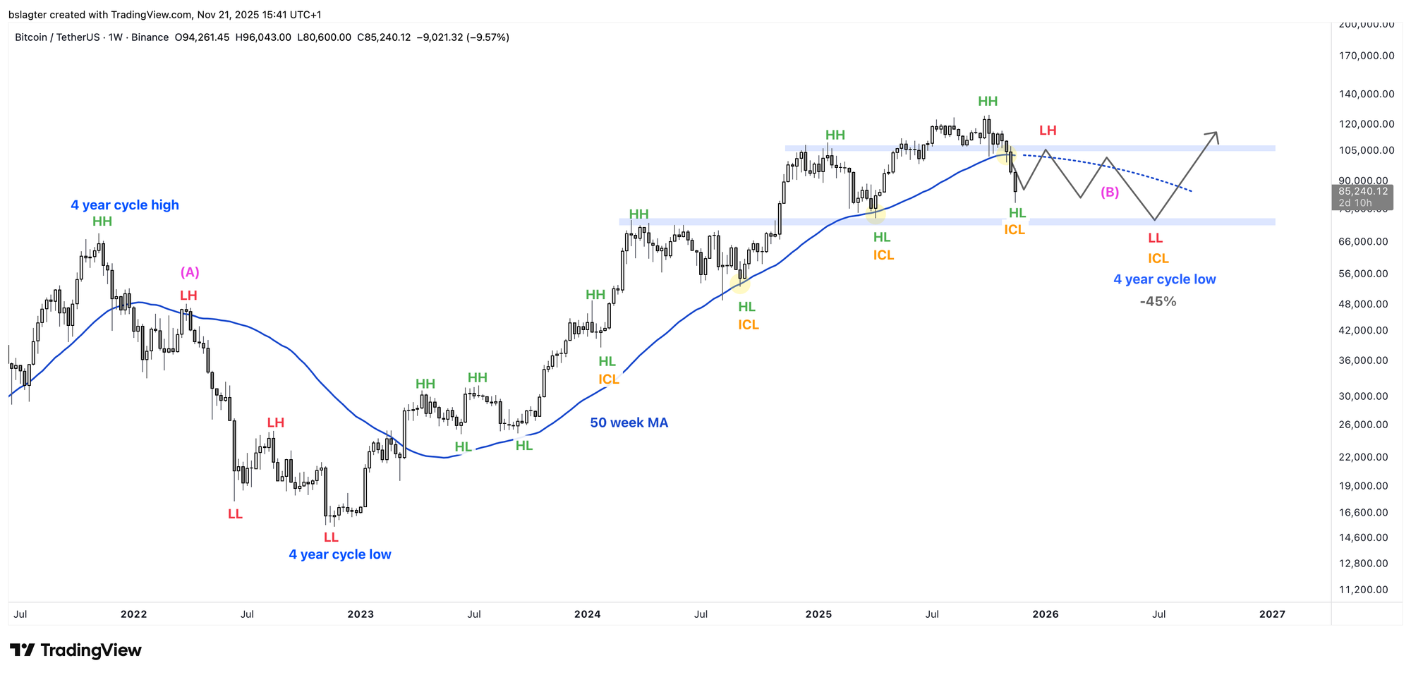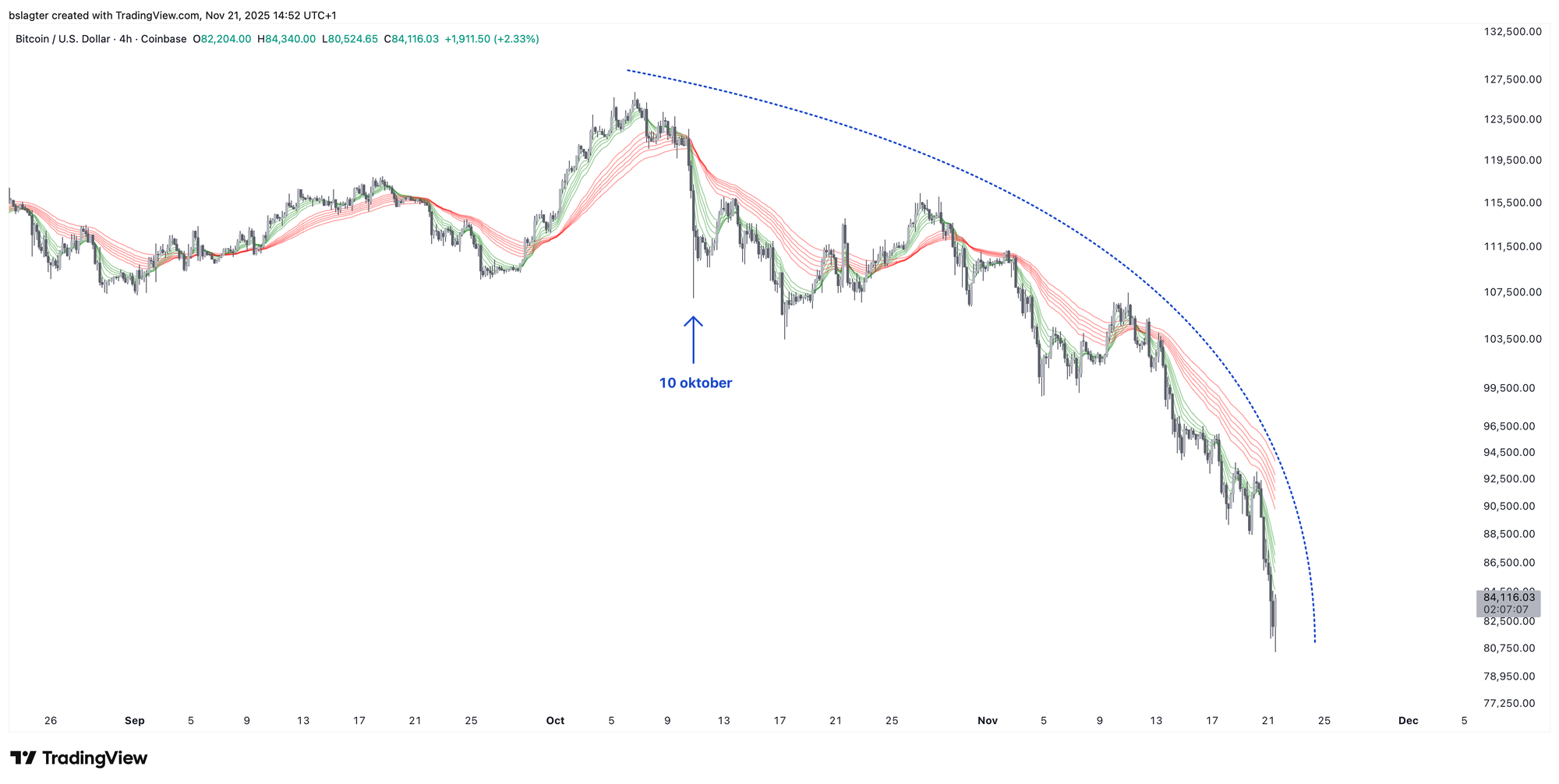 When we add all this up—the four trends, the macroeconomic context, and the shock of October 10th—it sufficiently explains why the price has fallen by 30% in four weeks. The low point, at $81,600, is now 35% below the top of $126,100.
